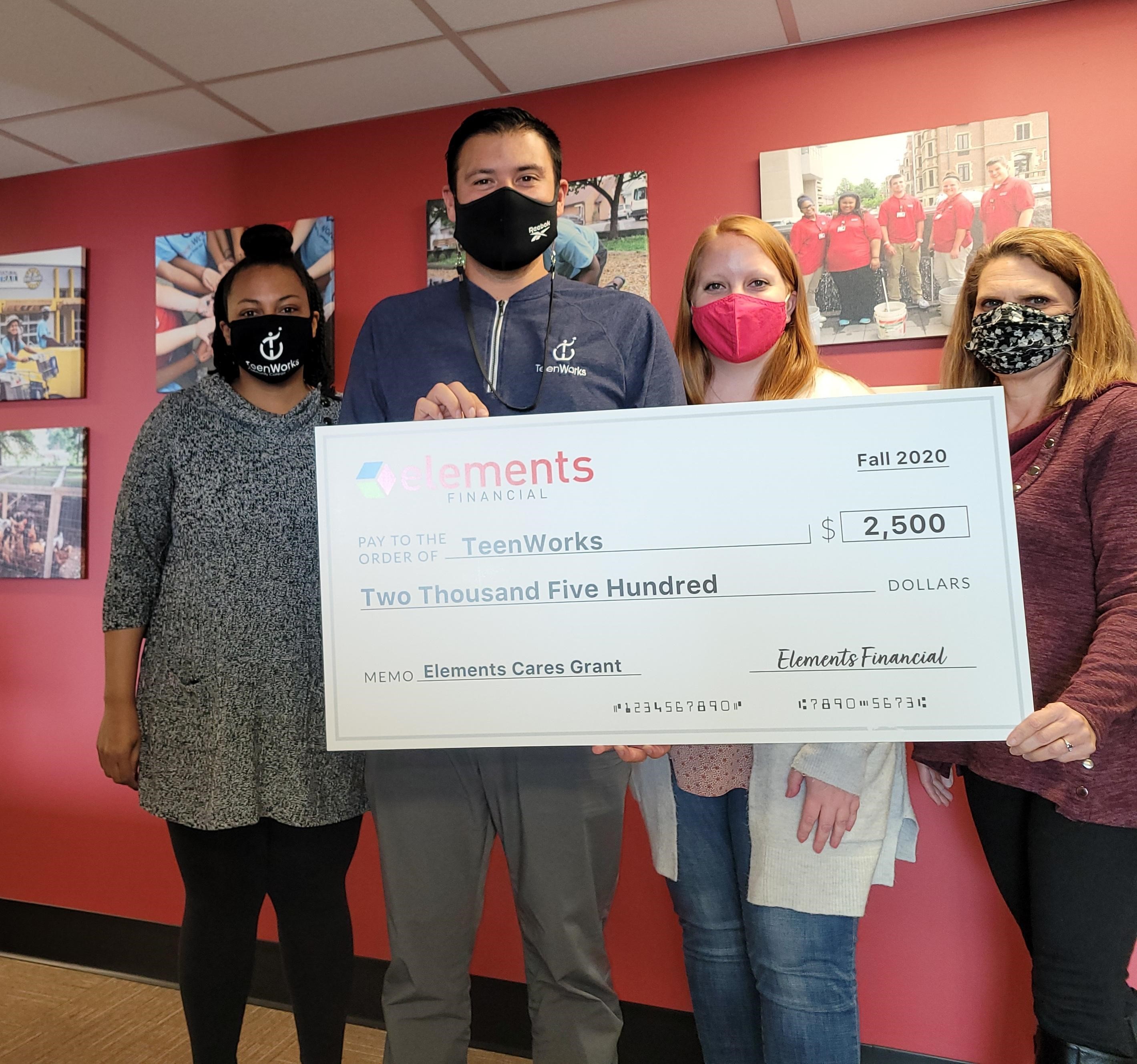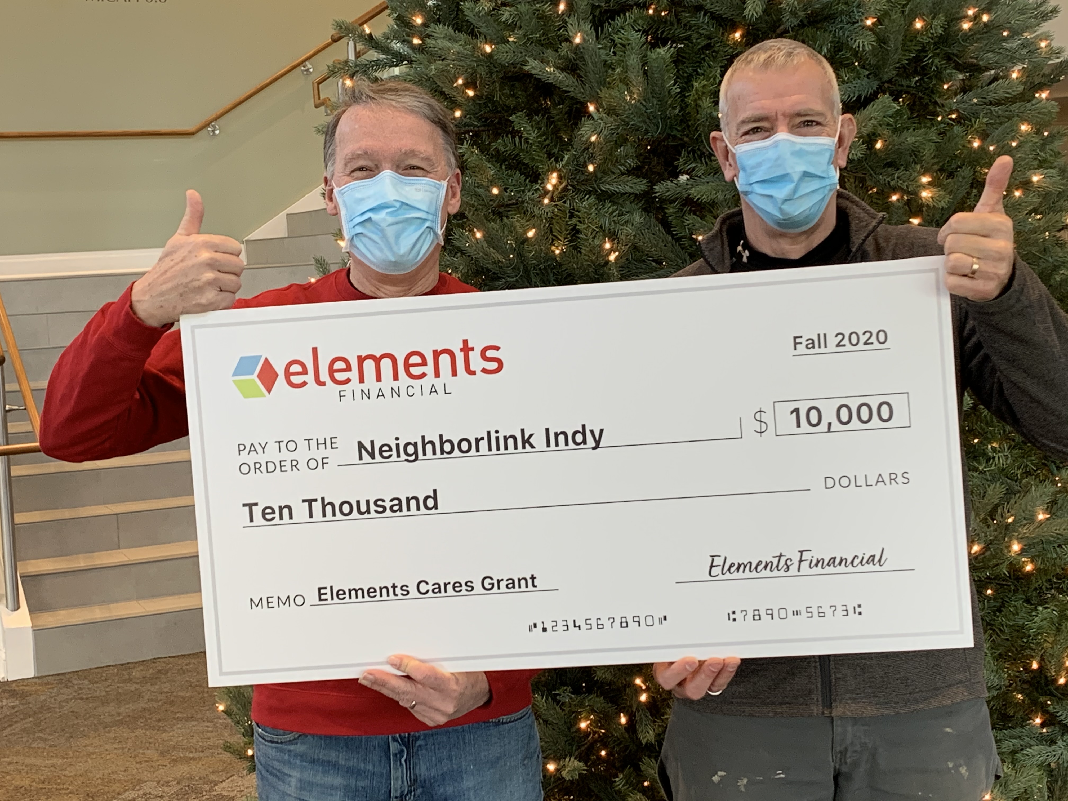 Elements Financial is committed to giving a portion of our annual net income back to nonprofit organizations aligning with our three Pillars of Giving: Homelessness & Housing, Youth Development and Healthy Lifestyles. The Elements Cares Committee, made up of five employees from various departments of the credit union, annually review grant submissions through a partnership with the Central Indiana Community Foundation.