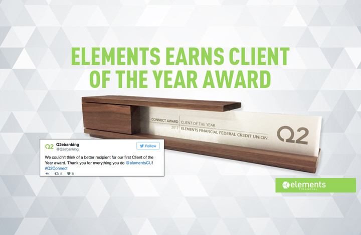We couldn't think of a better recipient for our first Client of the Year award. Thank you for everything you do @elementsCU! #Q2Connect pic.twitter.com/naxo9nfULs
