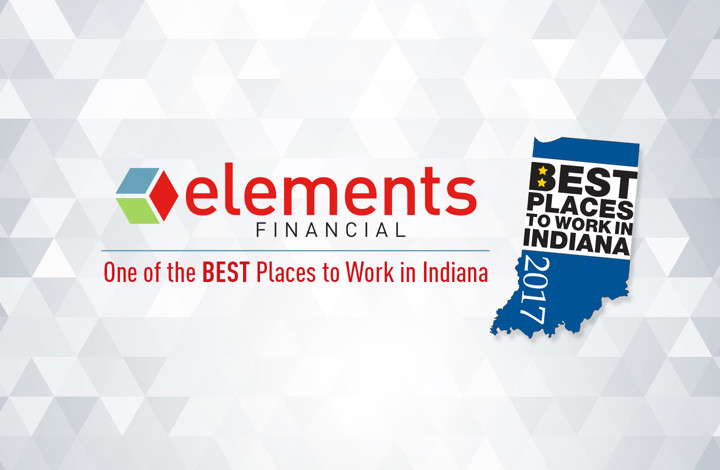 May 2, 2017 (INDIANAPOLIS) — Joining companies throughout the state and across 25 industries, Elements Financial has landed among 100 honorees on the 2017 Best Places to Work in Indiana list. The top companies in the state were determined through employer reports and comprehensive employee surveys.